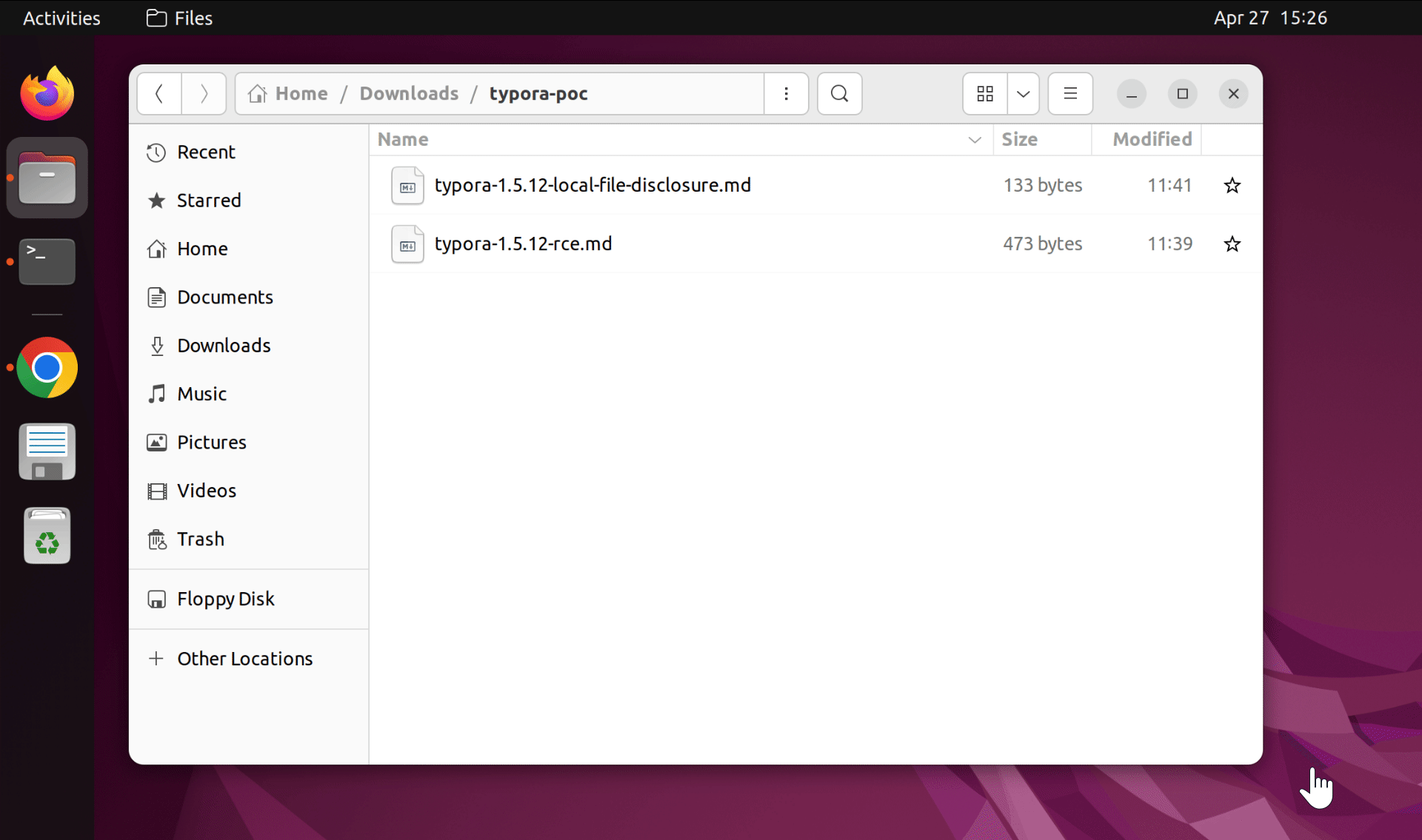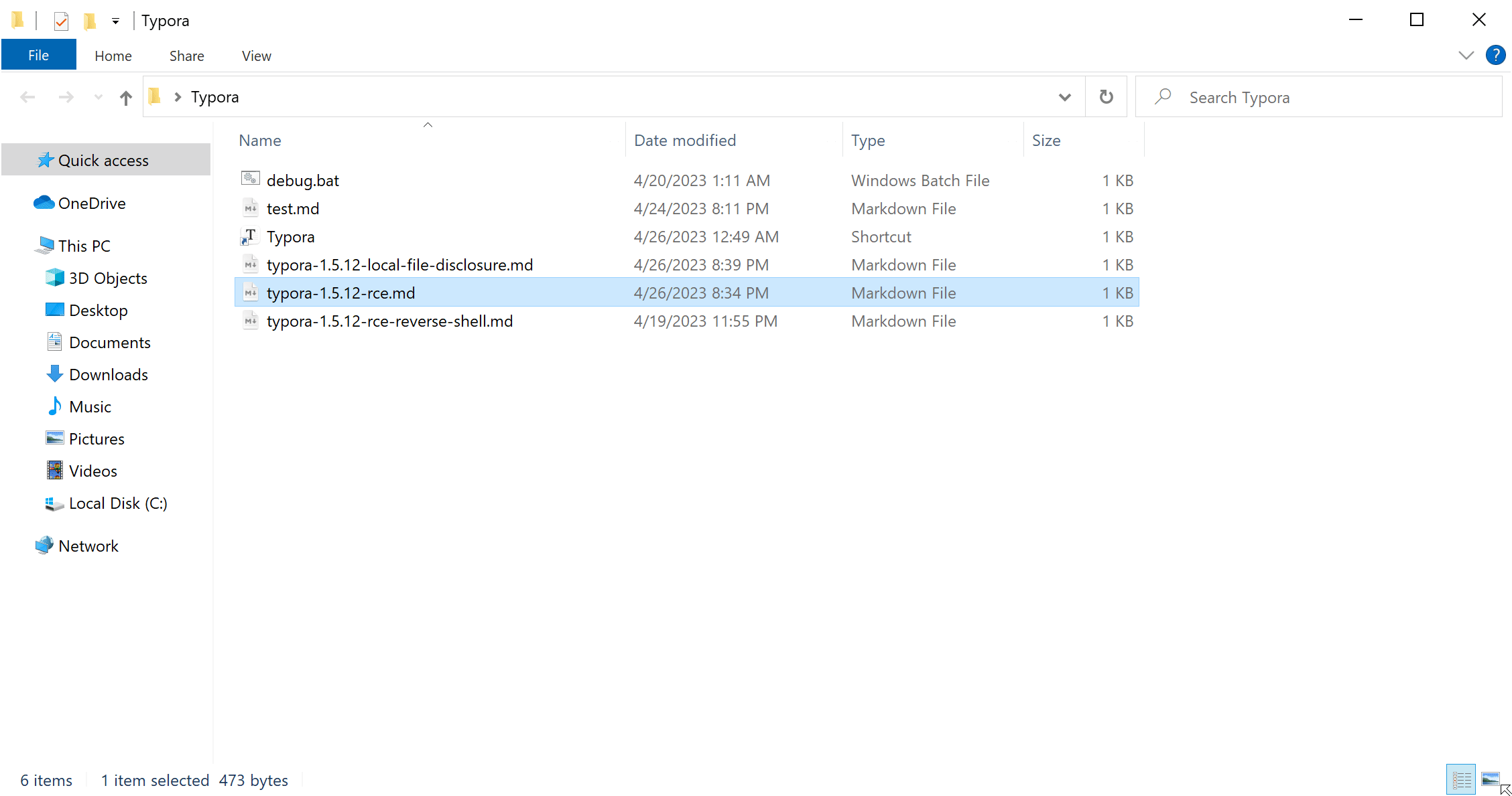 We have attached poc/typora-1.5.12-rce.md with this report for demonstration. Open the file in affected version of Typora to verify this vulnerability.