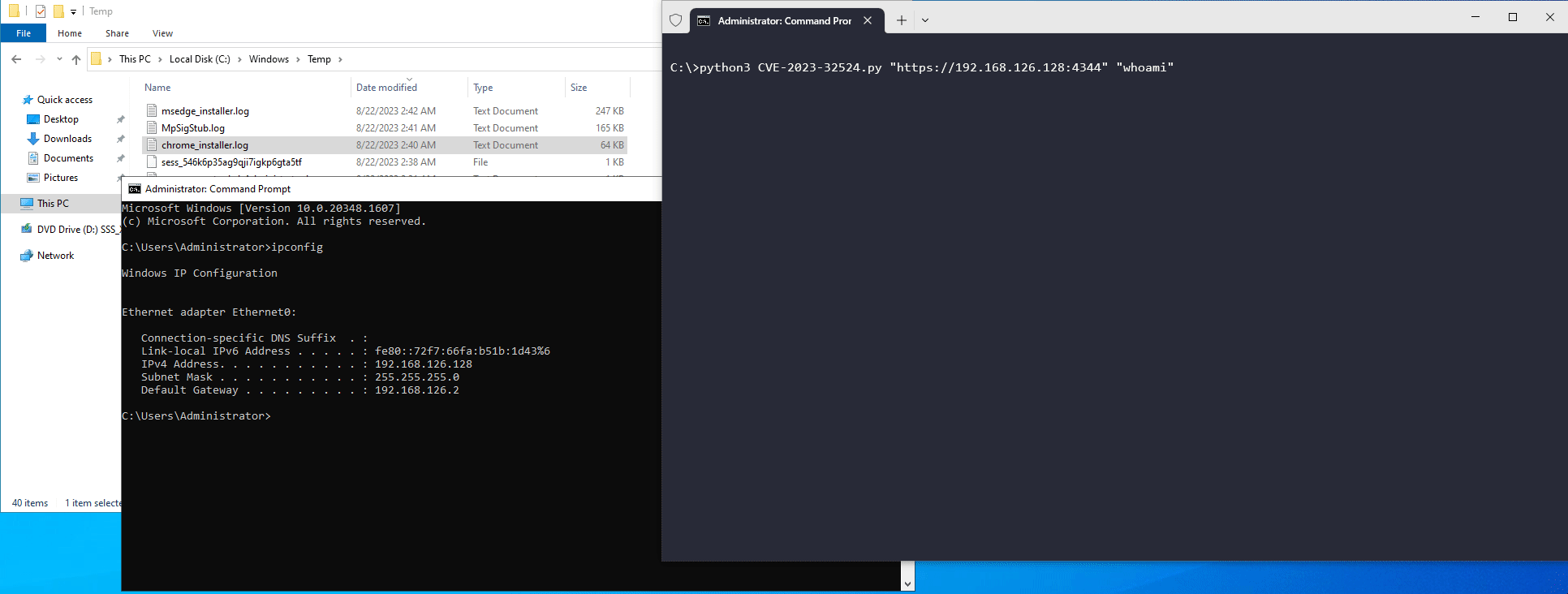 We have tried our best to make the PoC as portable as possible. The following is a functional exploit written in Python3 that exploits this vulnerability to achieve remote command execution: