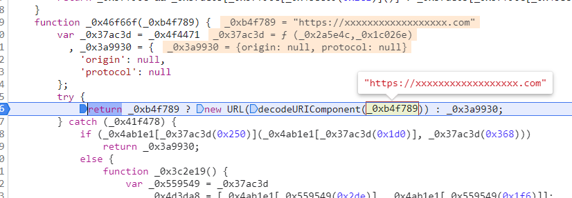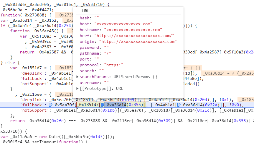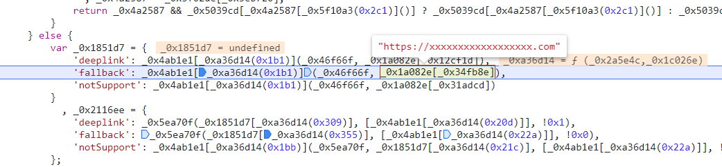 _0x3015c4in the_0x8033d6()function receives the variable fallbackUrl. Afterwards, the_0x46f66f()function is invoked to decode the URL stored infallbackUrland assign the resulting value to the variable_0x1851d7: