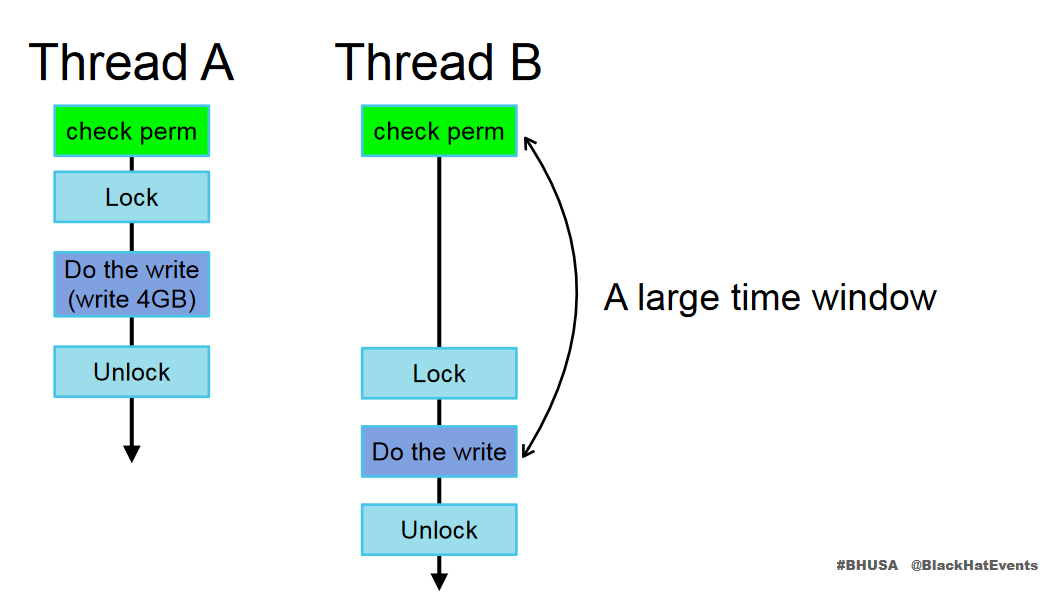 In both of these cases, we can simply stall the kernel thread at this copy_from_user() call until we’re done with other stuff, like spraying the heap. But is it possible to make the page fault take so long that we could complete our heap spray during that time window?