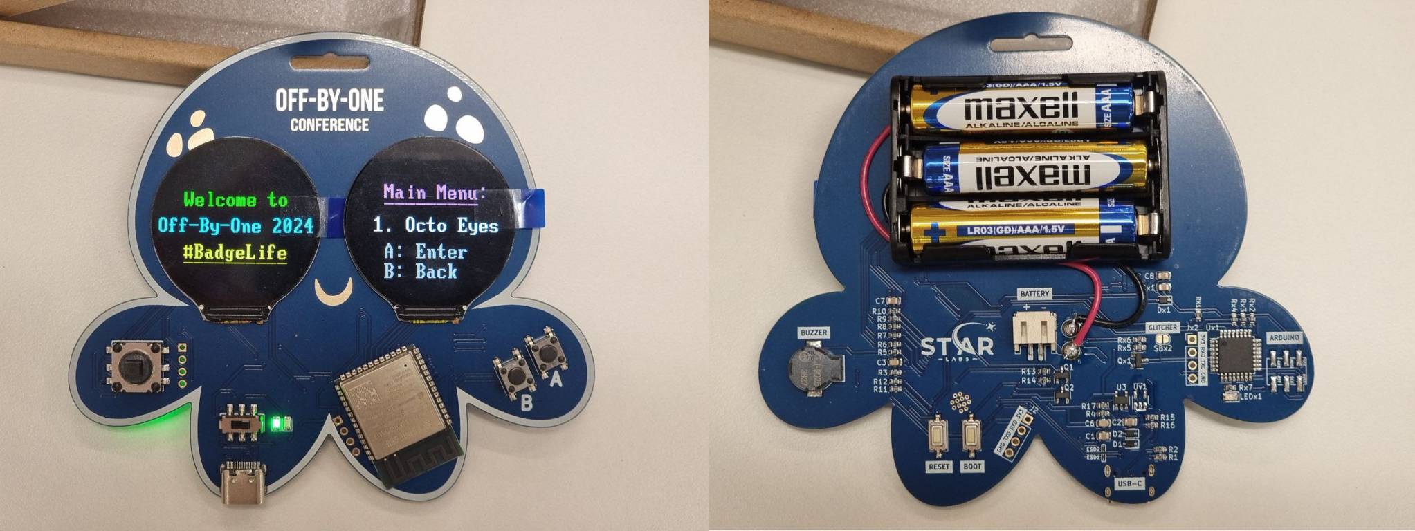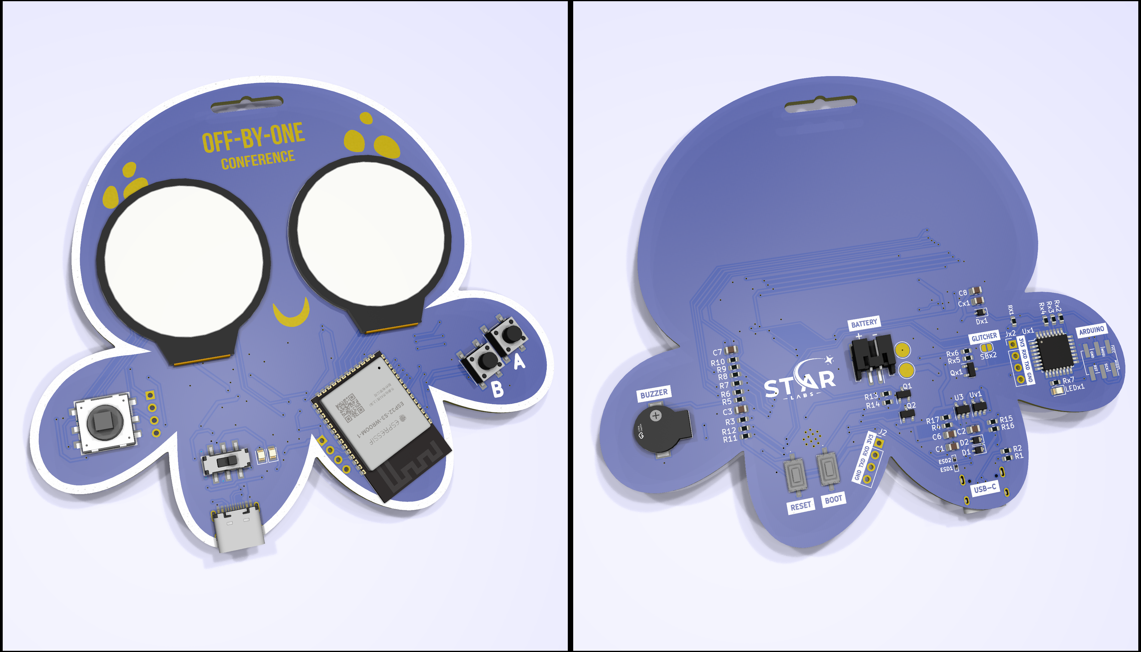 As promised, we are releasing the firmware and this post for the Off-By-One badge about one month after the event, allowing interested participants the opportunity to explore it. If you’re interested in learning more about the badge design process, please let us know. We were thrilled to introduce the Octopus Badge at the first-ever Off-By-One Conference 2024. The badge was a one of the highlight at the conference, as it included hardware-focused CTF challenges. In this post, we will explore the ideation and design process of the badge and discuss the concepts needed to solve the challenges.