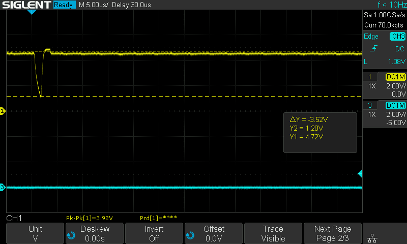 Due to variance in manufacturing, it may not be easily reproducible, as we see that the toggle may causes the Arduino to reboot entirely rather than glitch. This is because the power may be drained too quickly (ie. the glitch is “too strong”).