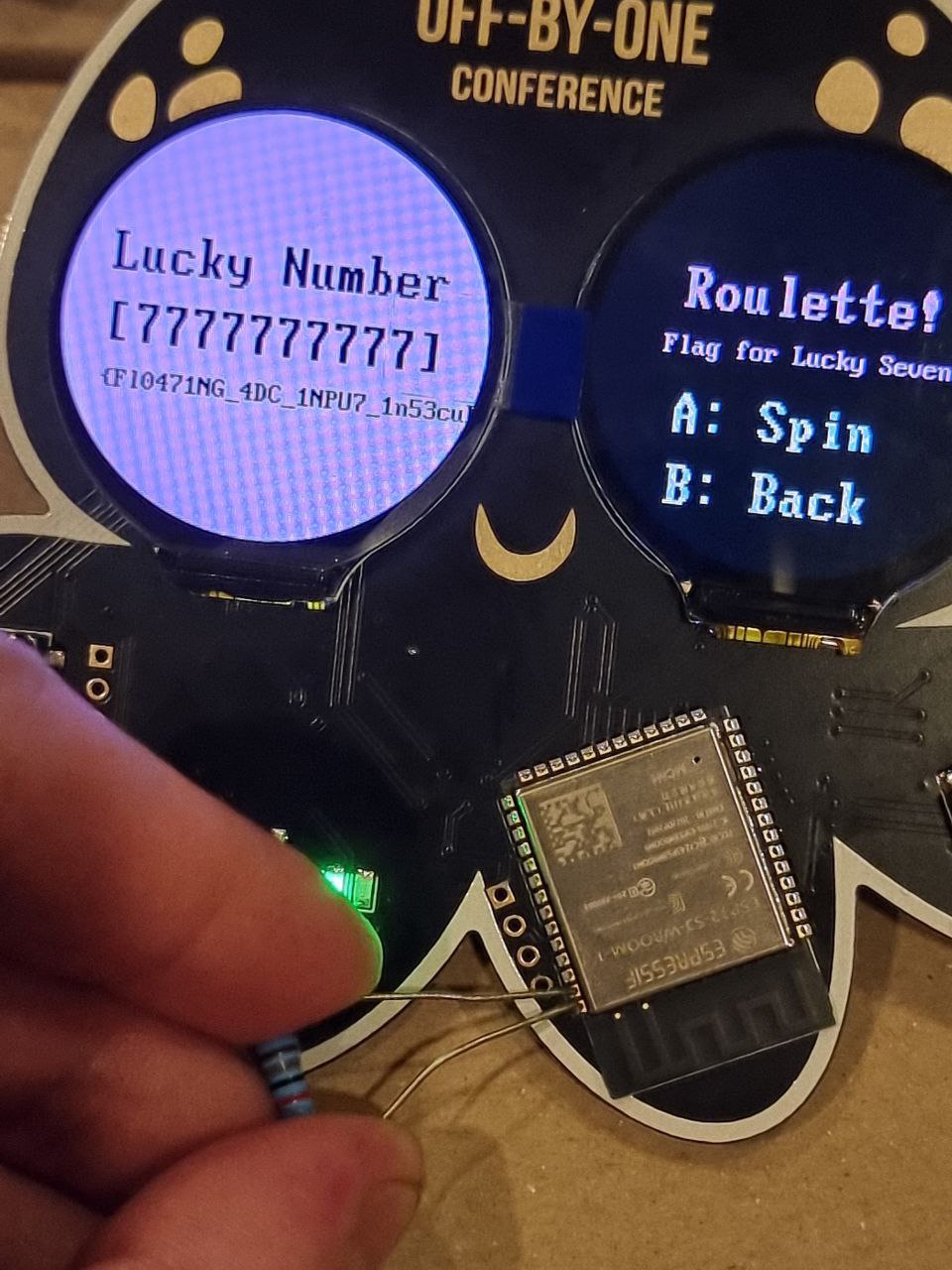 Through the display menu, a broken Roulette game is shown. Many people solved it by reversing the MicroPython-compiled library which can be extracted from the device as roulette.mpy. The files can be easily extracted MicroPython IDE such as Thonny or Mu Editor.