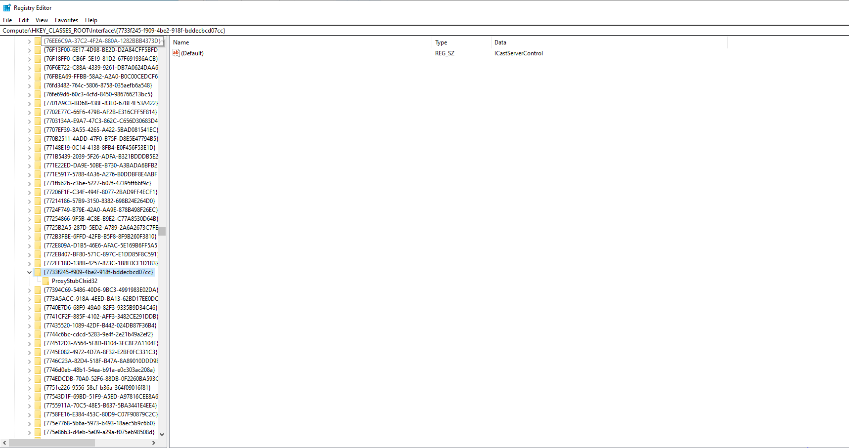 Since we know that the UUID of ICastServerControl is 7733f245-f909-4be2-918f-bddecbcd07cc, we can recreate it as follows.