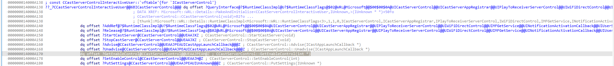 Step 2: We need to trigger the CCastServerControl::GetEnableControl function in the ICastServerControl interface.