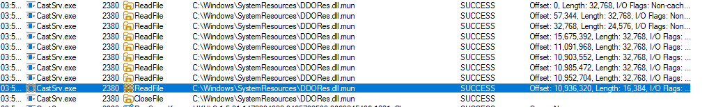 Before proceeding, we need to delete some image files in \user02\AppData\Local\__SHARED\ that were created when calling ICastServerControl->GetEnableControl. These image files are icon files that CastSrv.exe extracts from C:\Windows\SystemResources\DDORes.dll.mun. Since these files are located in the SystemResources folder, modifying them requires Administrator permissions, which we do not have.